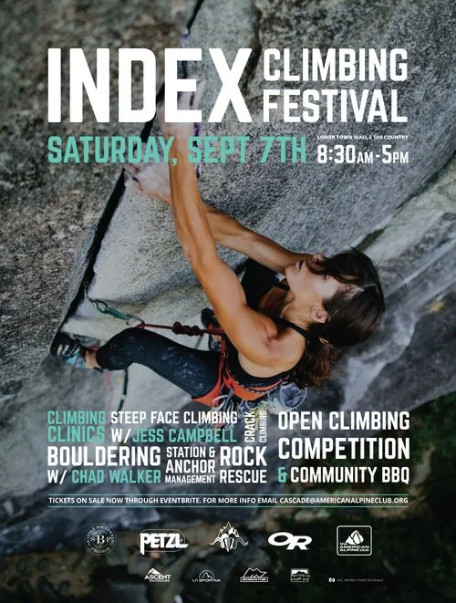 As a volunteer for the American Alpine Club I produced the Index Climbing Festival with support from local climbing organizations, the generosity of brands and their material and in-kind donations, and of course with the help of the Seattle climbing community.